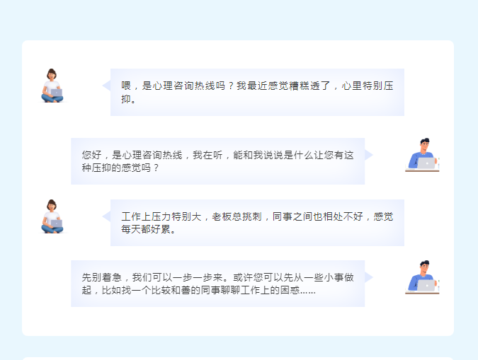 在来电者首次拨打热线及后续随访过程中,他们能感受到被关注、被关怀,这种温暖的体验让来电者明白,心理援助热线是改善心理状态的可靠途径,从而更积极主动地寻求专业帮助。